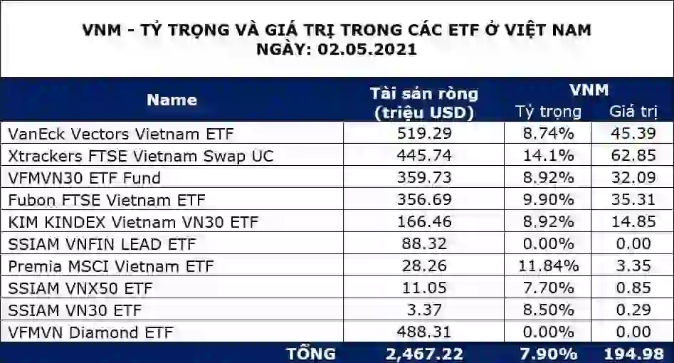 Bảng kiểm kê về các etfs đang nắm giữ vinamilk, chứng tỏ tham gia bán ròng vinamilk bắt buộc phải có các etfs này với tỉ trọng danh mục quân bình gần 8% và đặc biệt lên đến gần 15% ở một quỹ etf ngoại lớn là ftse. Từ đó có thể thấy lúc dòng tiền đảo nghịch trong nhiều năm trở lại đây bởi các biến số chủ đạo về rộng rãi như lãi và lạm phát thì vinamilk cũng sẽ bị bán ròng dữ dội tay từ các quỹ này.